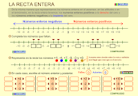 Actividades en la recta entera: representar números enteros, anterior y posterior de números enteros...